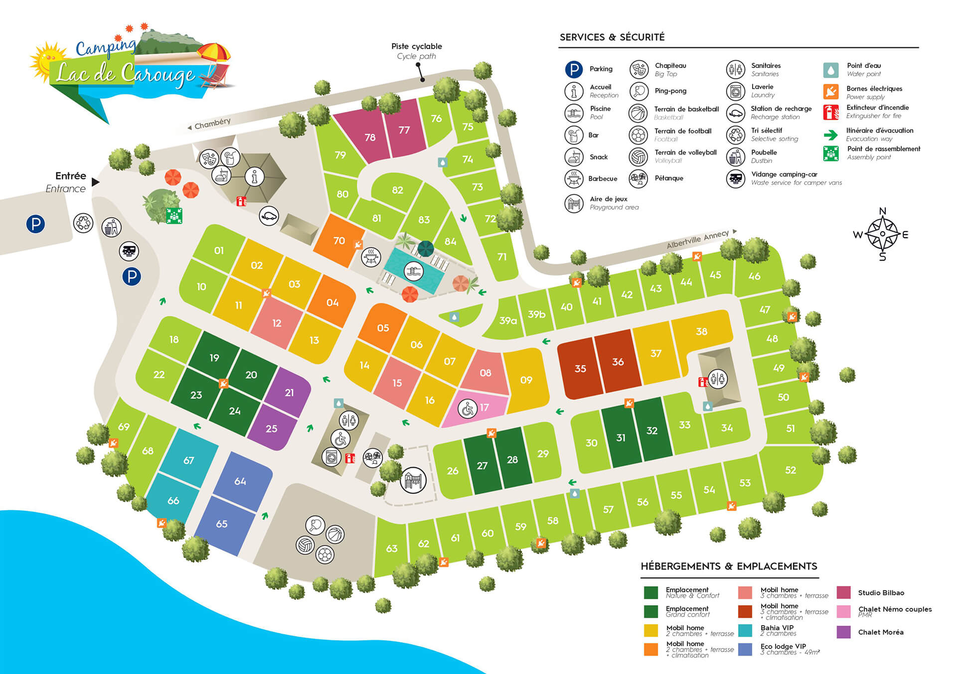 📝 Notre conseil : réservez tôt si vous souhaitez un emplacement bien précis, notamment en juillet-août. Certaines zones (au bord du lac ou près des sanitaires) sont très demandées !